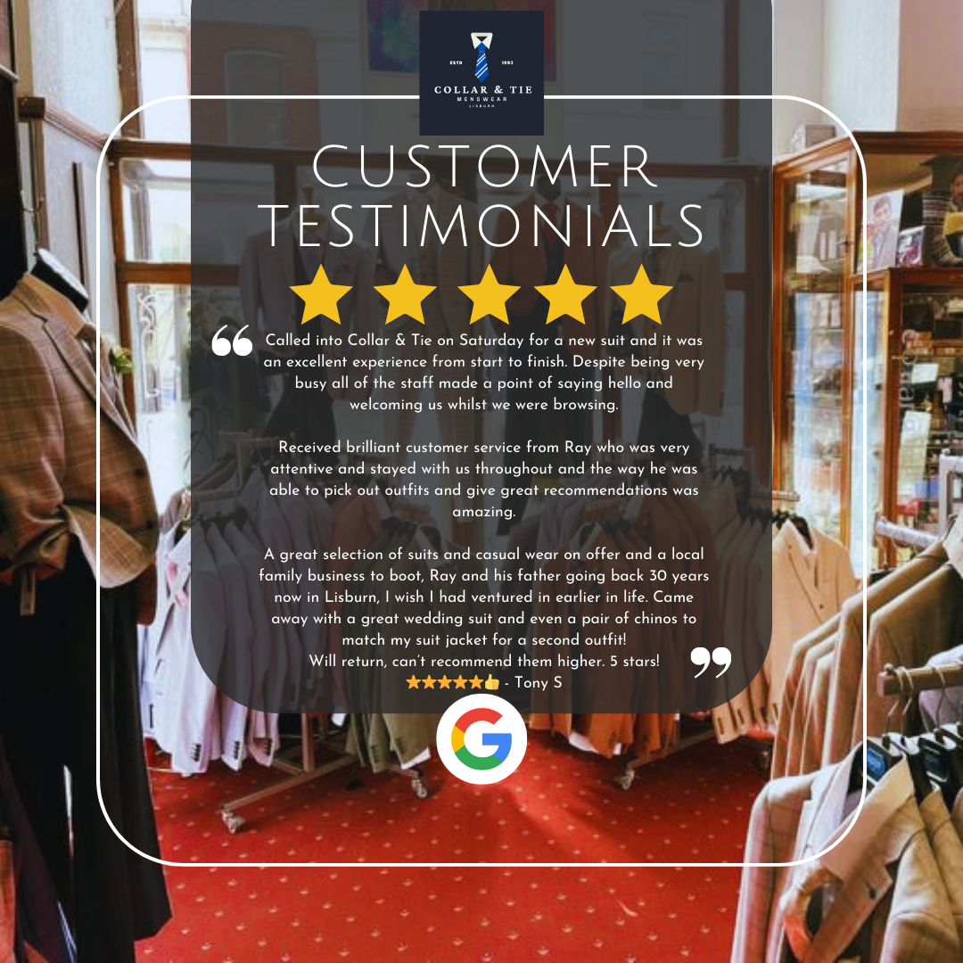 Collar and Tie Menswear is an award winning family run gentlemen's outfitters, specialising in Suits and casual attire. Serving Lisburn for over 30 Years, they are renowned for their excellent customer service and top quality brands.
